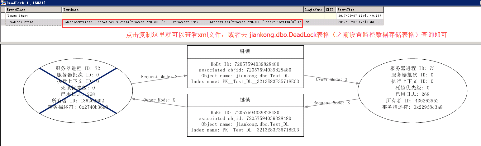 根據(jù)xml文件內(nèi)容或者擴展事件的監(jiān)控內(nèi)容,都可以整理為以下信息(開頭的那個死鎖分析):
