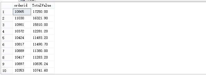 我們利用Sales.OrderDetails表來(lái)查詢總價(jià)(qty*unitprice)大于10000的訂單,且按照總價(jià)排序。
