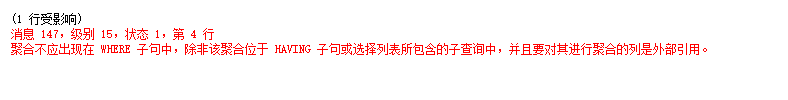 (3)WHERE不能用在聚合函數(shù)中,除非該聚合函數(shù)位于HAVING子句或選擇列表所包含的子查詢中。