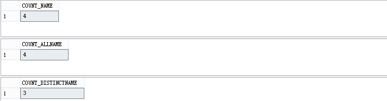 關(guān)于DISTINCT就不用多講,此關(guān)鍵字過(guò)濾重復(fù)針對(duì)的是所有列數(shù)據(jù)一致才過(guò)濾而不是針對(duì)于單列數(shù)據(jù)一致才過(guò)濾,我們看看COUNT(DISTINCT)和COUNT(ALL)查詢出的數(shù)據(jù)是一致還是不一致呢?我們首先創(chuàng)建測(cè)試表