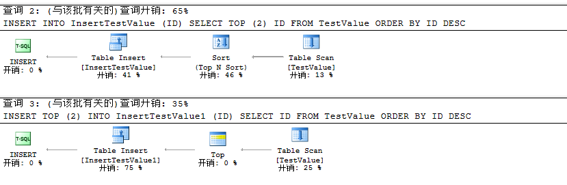 到這里我們能夠知道利用INSET TOP (N)比INSERT … SELECT TOP (N)性能更好,同時(shí)SELECT TOP(N)會(huì)對(duì)查詢出的數(shù)據(jù)排序進(jìn)行忽略。至此我們可以得出如下結(jié)論