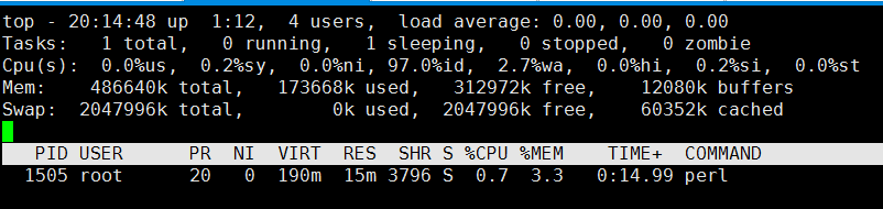 運行了0:15.00(TIME+列),MEM一直穩定在3.3%