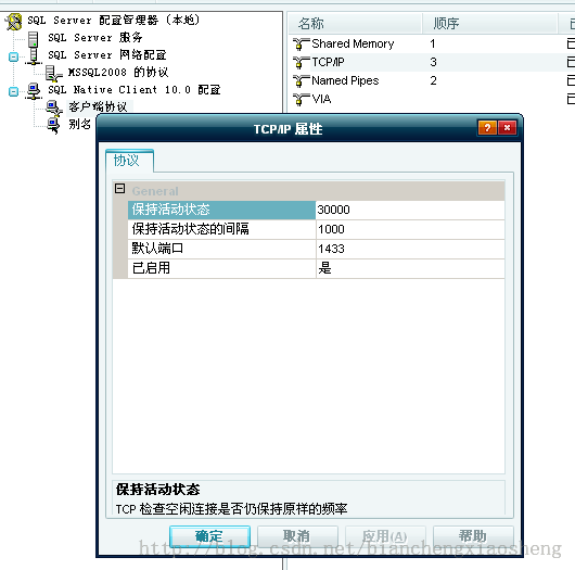 同樣的方法,開啟客戶端的TCP/IP,端口也為1443,如圖: