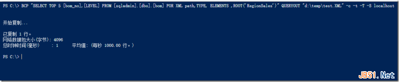 我們可以通過如下BCP命令(注意不能有回車)將其導出為XML文件,并保存: