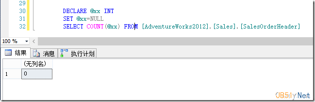 由于所有行都為NULL,則結果全不計數(shù)為0,結果如圖1所示。