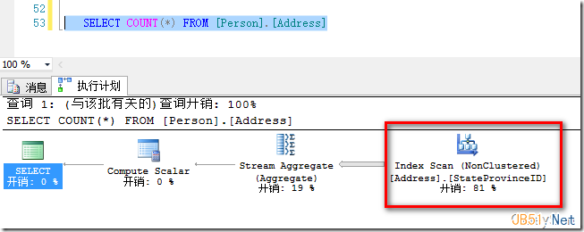 我們繼續(xù)在StateProvinceID列上建立索引,該列為INT列,占4字節(jié),相比之前8字節(jié) DateTime類型的列更短,因此SQL Server選擇了StateProvinceID索引。如圖4所示。
