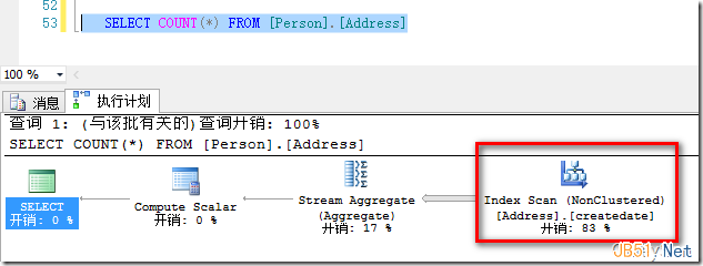 我們在Adventureworks2012示例數(shù)據(jù)庫的[Person].[Address]表上刪除所有的非聚集索引,在ModifyDate這個數(shù)據(jù)類型為DateTime的列上建立索引,我們看執(zhí)行計劃,如圖3所示: