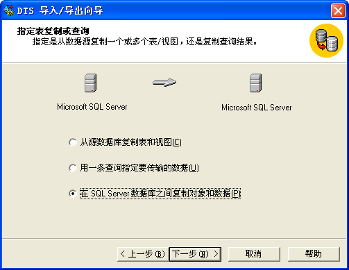 7、選擇“在SQL Server數據庫之間復制對象和數據”方式,點“下一步”繼續