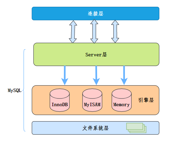 MySQL服務層負責SQL語法解析、生成執行計劃等,并調用存儲引擎層去執行數據的存儲和檢索。