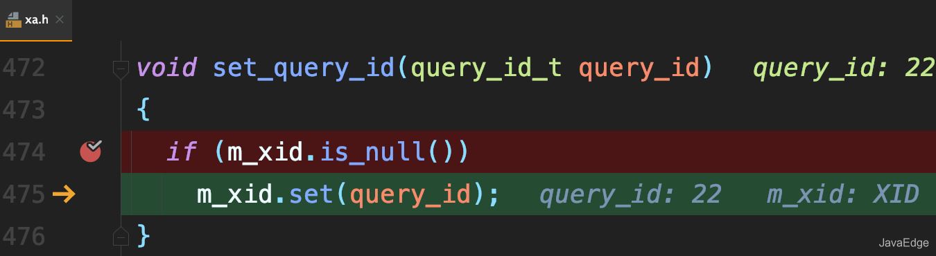 若當前語句是該事務執行的第一條語句,則MySQL還會同時把query_id賦值給該事務的Xid: