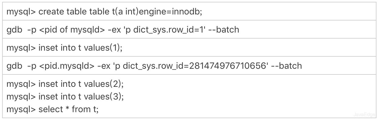 驗證該結論:通過gdb修改系統的自增row_id。用gdb是為了便于復現問題,只能在測試環境使用。