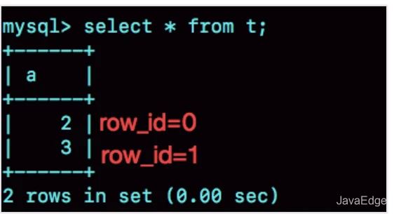 之后再插入a=3,由于row_id=1,就覆蓋了之前a=1的行,因為a=1這一行的row_id也是1。