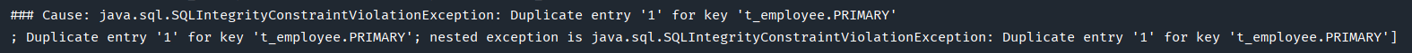 當(dāng)我再發(fā)送一次請(qǐng)求的時(shí)候,會(huì)報(bào)SQL語句執(zhí)行錯(cuò)誤,因?yàn)橹麈I唯一,并且ID=1的記錄已經(jīng)存在了。