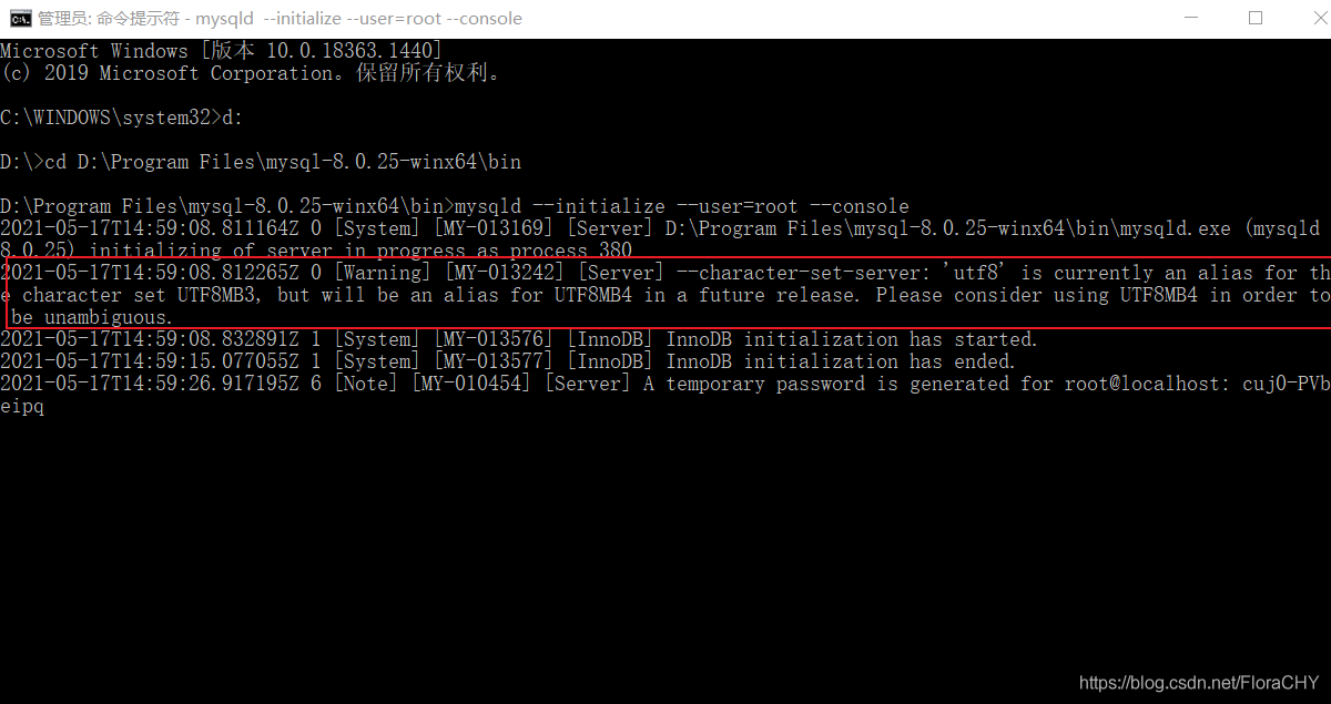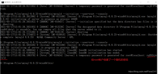 這里需要注意的一點,如果data文件不為空,則會報錯:The designated data directory D:\Program Files\mysql-8.0.25-winx64\data\ is unusable. You can remove all files that the server added to it.