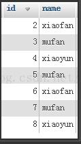 用distinct來返回不重復(fù)的name和id:select distinct name,id from user;,結(jié)果為: