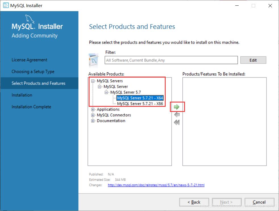4、點開這個框,選擇64位或32位的MySQL,現在一般電腦都是64的吧,點擊中間那個箭頭:
