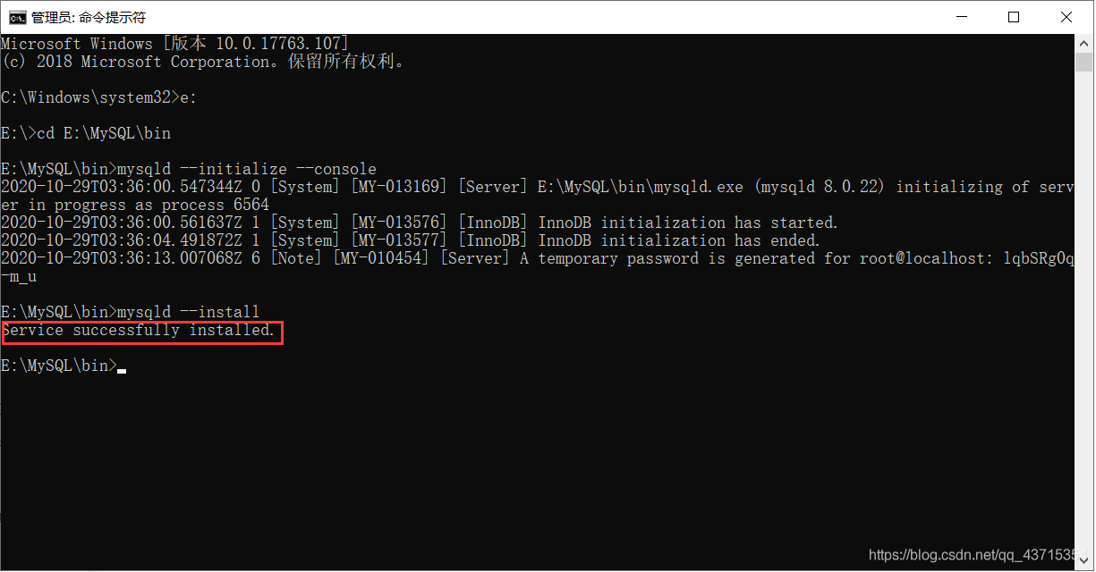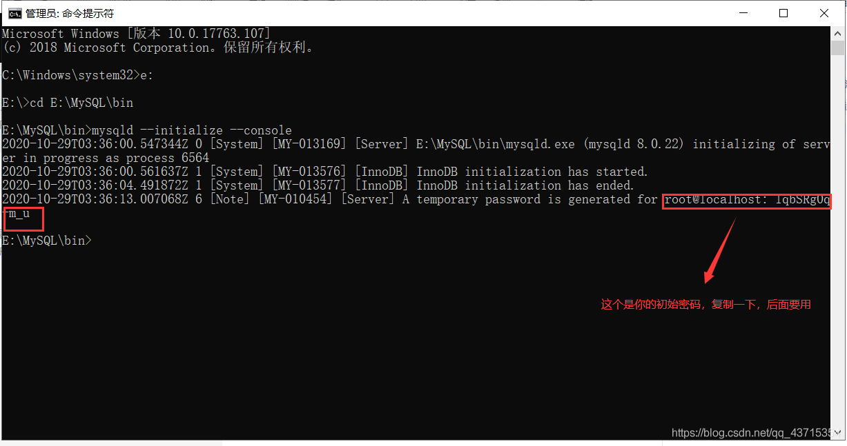 在MySQL目錄下的bin目錄下輸入 mysqld --initialize --console ,如下圖所示: