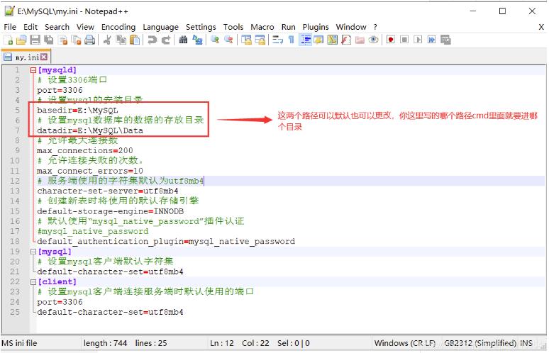 解壓后的目錄并沒有的my.ini文件,沒關系可以自行創建在安裝根目錄下添加的my.ini(新建文本文件,將文件類型改為的.ini) ,寫入基本配置: