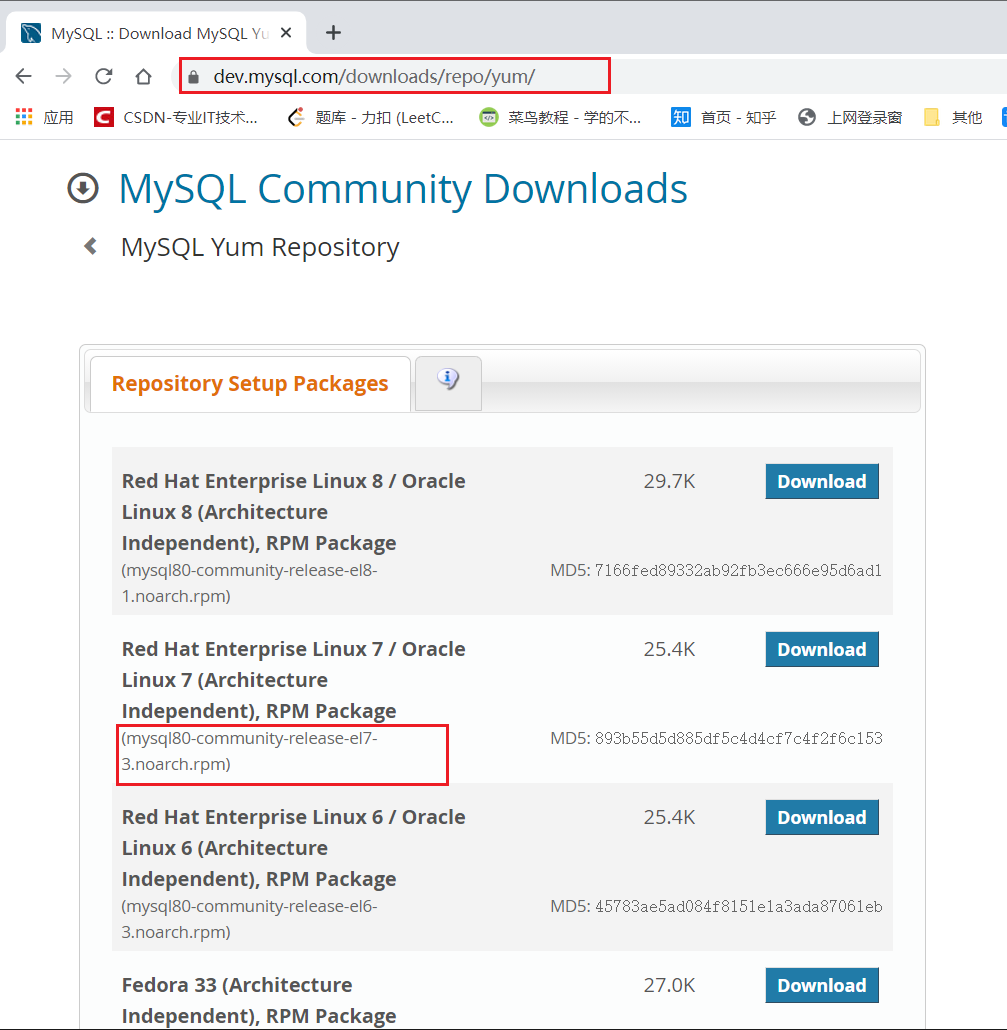 比如說(shuō)我的是http://dev.mysql.com/get/mysql80-community-release-el7-3.noarch.rpm