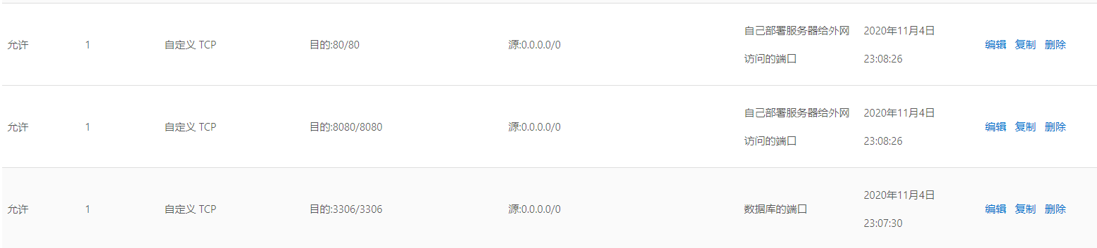 后面修改阿里云的安全組規(guī)則:在 阿里云控制臺(tái)防火墻處,添加新的規(guī)則 開(kāi)放3306端口: