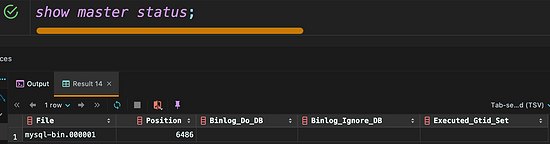 show master status 查看binlog日志狀態(tài)。查看最后一個(gè)Binlog日志的編號(hào)名稱(chēng),及最后一個(gè)事件結(jié)束的位置( pos )