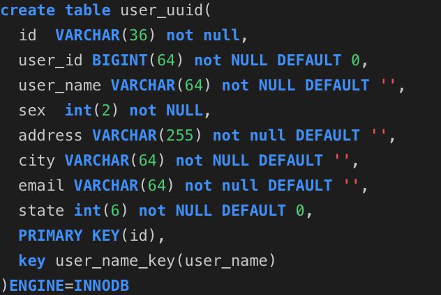 1.1:要說明這個問題,我們首先來建立三張表,分別是user_auto_key,user_uuid,user_random_key,分別表示自動增長的主鍵,uuid作為主鍵,隨機key作為主鍵,其它我們完全保持不變.根據(jù)控制變量法,我們只把每個表的主鍵使用不同的策略生成,而其他的字段完全一樣,然后測試一下表的插入速度和查詢速度: