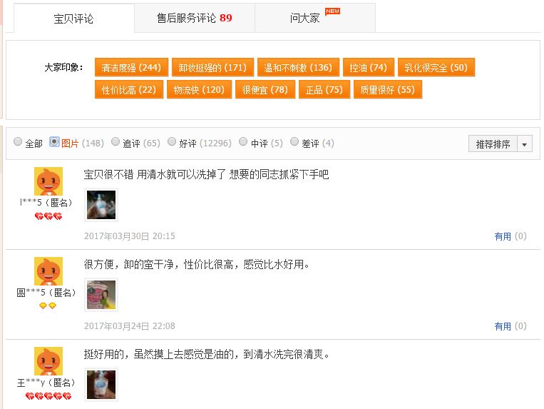 對于現(xiàn)在的商品詳情頁,評價模塊可以說是起著主導(dǎo)性的作用,很多用戶一點(diǎn)進(jìn)商品還沒看商品的詳細(xì)介紹就直接打開了評價模塊,仿佛關(guān)于商品的一切信息都可以從這里得到。很多時候,用戶會靠著“大家都說好一定就是好”的觀念來購物,這時候把好的評價置頂就顯的很重要,這樣至少讓用戶的第一印象就是好的。