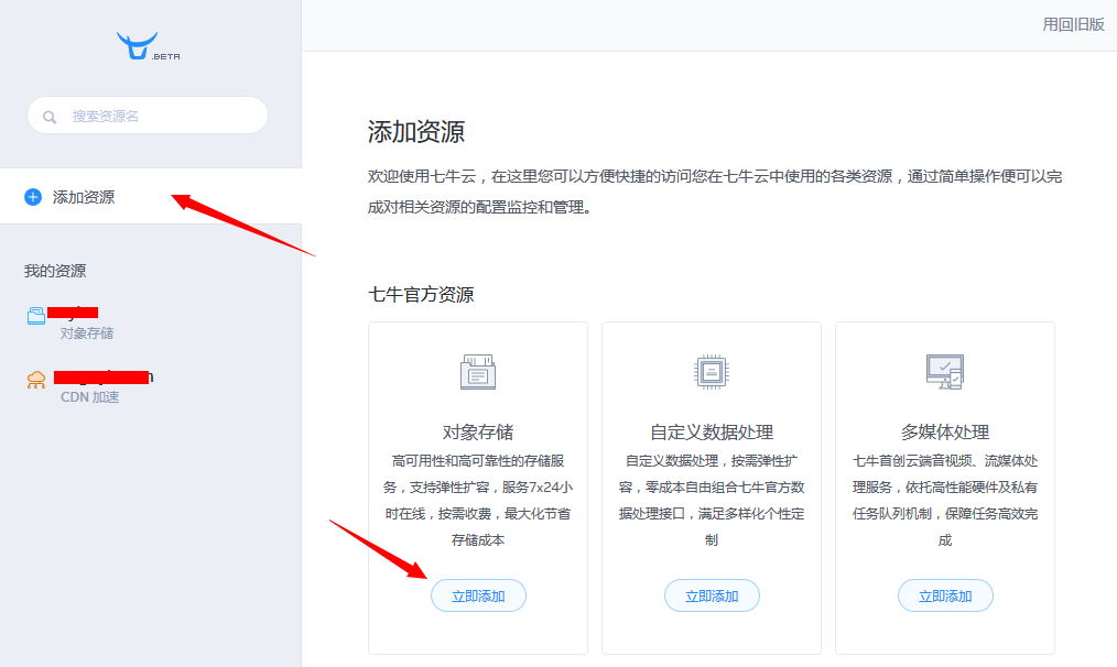 2.注冊好+登錄后,如下圖所示:點(diǎn)擊“添加資源 > 對象存儲”