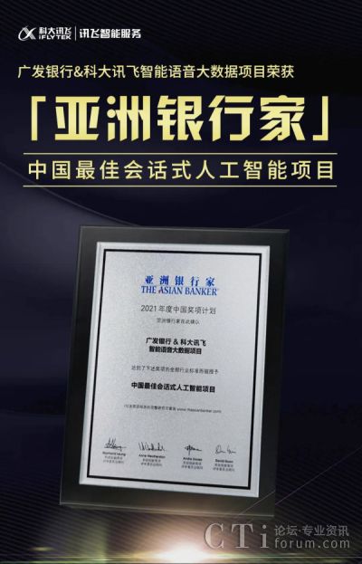 7月22日,由亞洲銀行家舉辦的“新時(shí)代,新金融,新融合”2021中國(guó)未來(lái)金融峰會(huì)在北京成功舉辦。經(jīng)過(guò)2021年中國(guó)獎(jiǎng)項(xiàng)計(jì)劃嚴(yán)格的評(píng)審環(huán)節(jié),廣發(fā)銀行科大訊飛“智能語(yǔ)音大數(shù)據(jù)項(xiàng)目”達(dá)到全部行業(yè)標(biāo)準(zhǔn),被授予“中國(guó)最佳會(huì)話式人工智能項(xiàng)目”。作為目前金融服務(wù)行業(yè)內(nèi)最受尊重和認(rèn)可的年度獎(jiǎng)項(xiàng)計(jì)劃之一,亞洲銀行家中國(guó)獎(jiǎng)項(xiàng)計(jì)劃自2006年啟動(dòng),迄今已有16年的歷史。