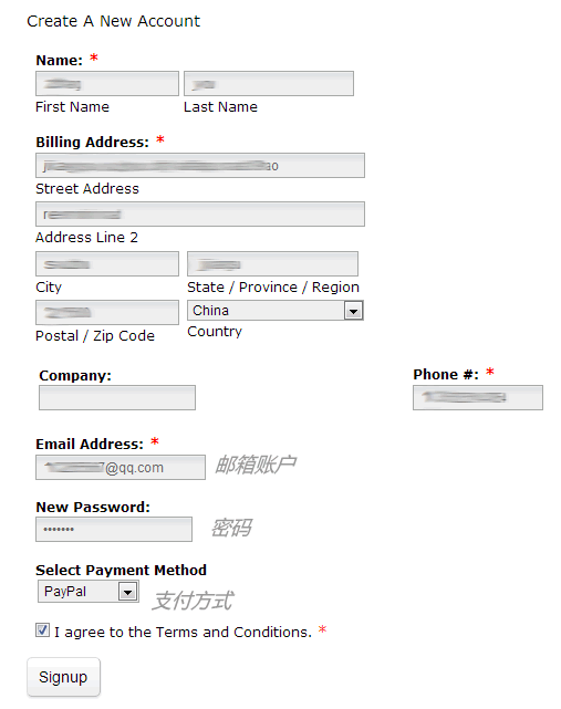 個人信息資料隨便填寫,這家審核的不是太嚴格。只要把該填寫的格子里都填好,用拼音填寫也可以。地區肯定是寫我們自己的CHINA,具體是哪個省和市隨便填寫。只要我們把郵箱和密碼,以及支付方式不能搞錯就可以了。