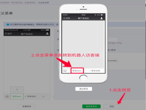 5.1.2再點擊添加好的菜單:[聯系kefu]即可跳轉到機器人H5訪客入口