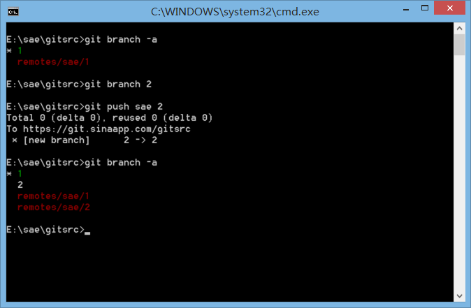 添加一個Git遠程倉庫sae,地址為:https://git.sinaapp.com/gitsrc