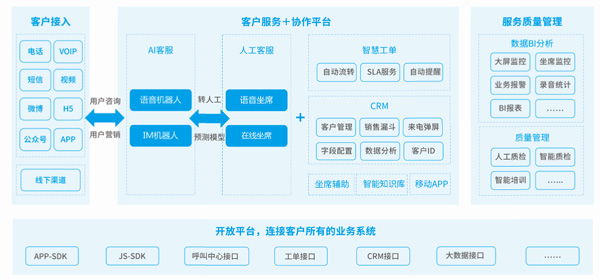 中通天鴻創立于2010年,是國內領先的全場景智能呼叫中心解決方案提供商。公司聚焦于企業與用戶的連接交互,通過將自身積累的通信技術與ABC技術融合,為企業提供覆蓋售前、售中和售后全場景智能呼叫中心系統及解決方案。可以幫助企業打造人工客服和機器人客服相互協作的智慧服務場景,降低人員成本,提升服務效率和客戶體驗;通過數據分析、用戶畫像、風險防控、機器人智能外呼系統,實現智能營銷,助力企業提升品牌形象和外呼接聽率;此外,多維統計、智能助手、智能質檢等還可以幫助企業進行科學管理和決策。