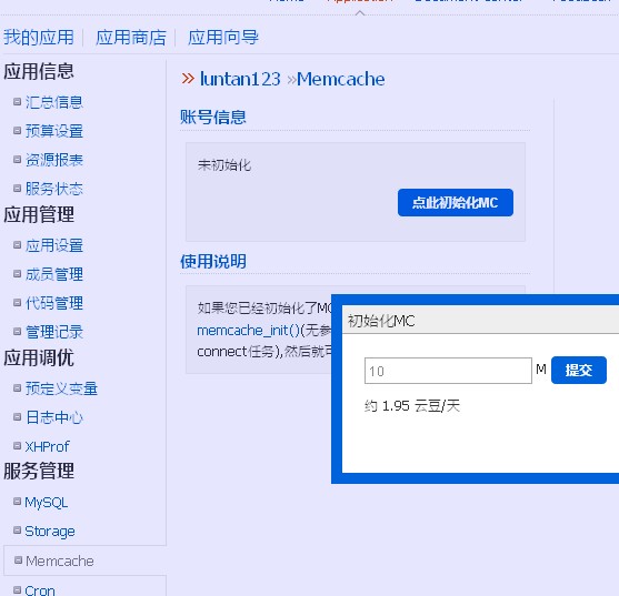 登陸你的SAE應(yīng)用管理后臺(tái),點(diǎn)擊mysql,初始化數(shù)據(jù)庫(kù)。
