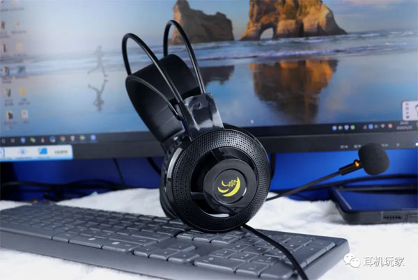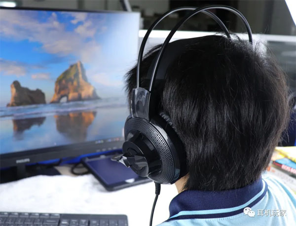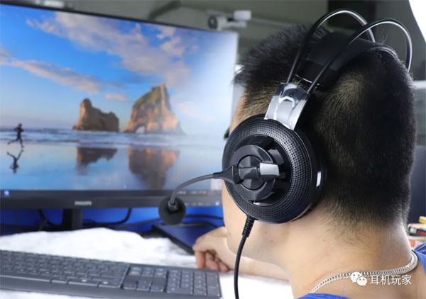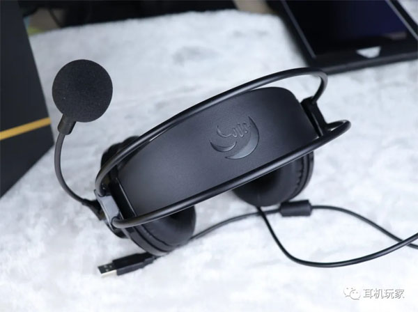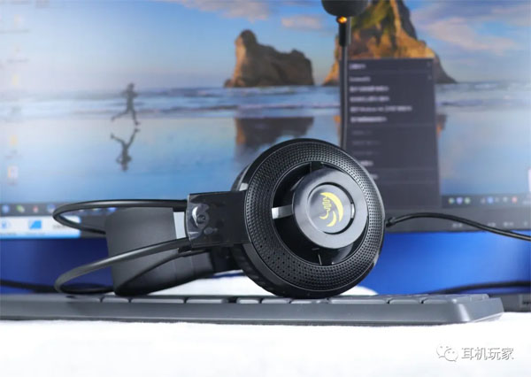 耳機并沒有配置常見3.5接口,而是采用USB接口,內置獨立聲卡,即插即用無需驅動,這點還是比較方便的,省去不少繁瑣的操作。看來主要是電腦端使用了。