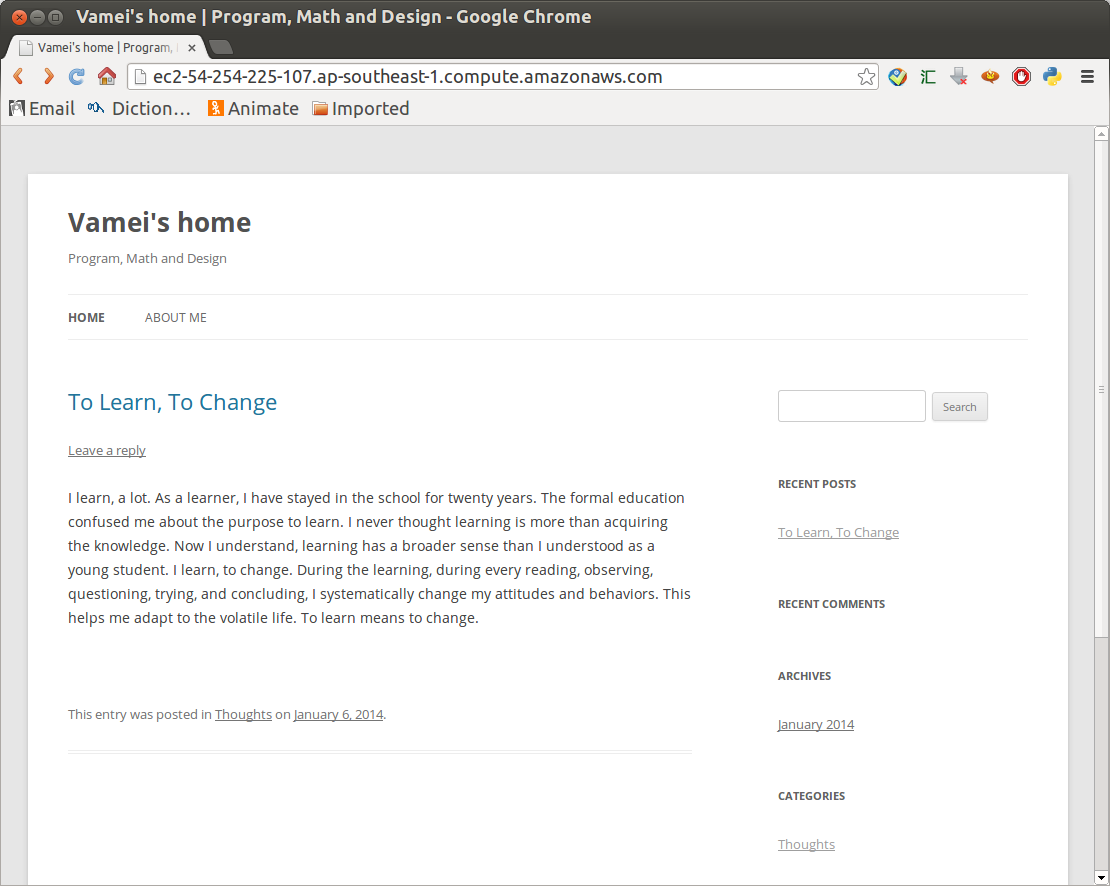 這一修改可能需要一些時(shí)間才能生效。生效后,可以通過vamei.me訪問我的博客了。