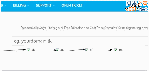 2、進入Freenom官方網站后,輸入你想要注冊的域名,然后選擇域名后綴:.TK、.CF、.ML、.GA