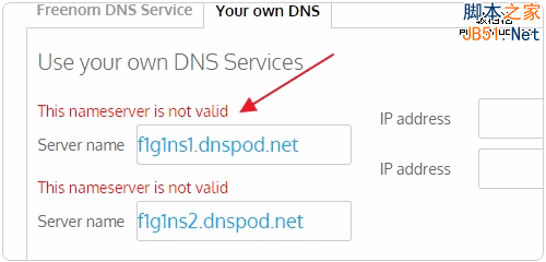 1、一個問題是如果選擇使用自定義DNS時(一般我們會用國內的DNSPOD),會出現NS服務器地址無效的問題。