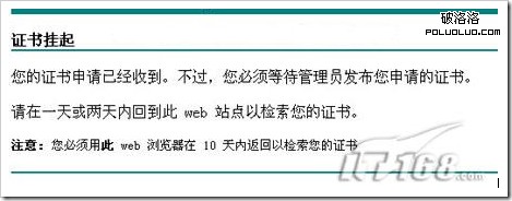 第七步:成功申請后出現證書掛起提示,說明證書申請已經收到,等待管理員通過申請認證。(如圖27)