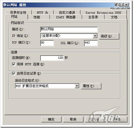 第五步:再次來到默認網站屬性中的網站標簽,可以看到SSL端口已經配置了端口信息——443。如圖: