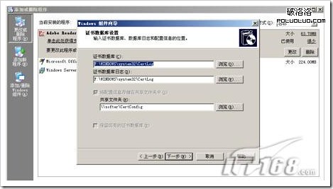 第七步:輸入證書數據庫等信息的保存路徑,仍然選擇默認位置系統目錄的system32下的certlog即可。