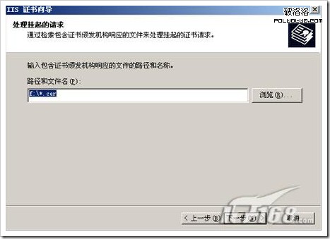 第三步:通過瀏覽按鈕找到在驗證證書第五步中通過證書導出向導剛剛保存的DER編碼格式的文件。如圖: