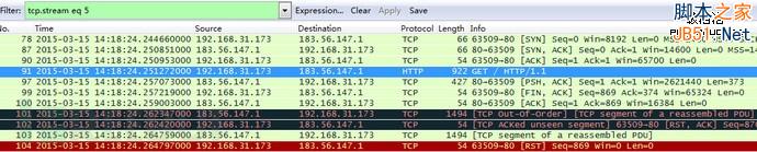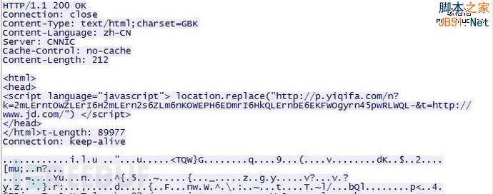 從Wireshark結果可以看到,網絡上出現了兩個京東的HTTP響應。第一個先到,所以瀏覽器執行里面的JavaScript代碼轉到了yiqifa.com;第二個HTTP響應由于晚到,被系統忽略(Wireshark識別為out-of-order)。