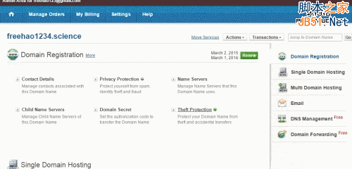 1、登錄到register.science用戶管理界面,這里就是域名管理面板了,這是界面:(點擊放大)