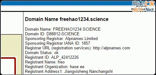 6、.science域名和TK等免費域名不同,它是Whois的,不過目前還只能是在register.science中查詢到.science域名的Whois信息,其它的網站應該會在日后添加支持。