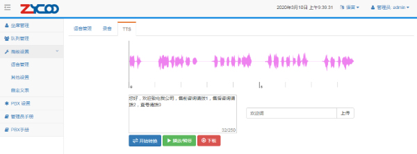 支持文字轉語音功能,通過TTS功能可以輸入相應的文字轉成與之對應的語音文件,該語音文件可用于呼出及呼入的IVR語音播報。不再需要專人錄音,提升效率,降低人工成本。