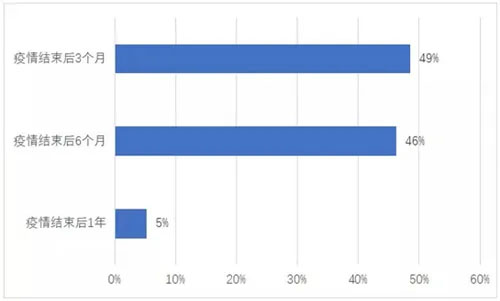 中國飯店協會研究院發布《新冠疫情下中國餐飲業發展現狀與趨勢報告》餐飲疫情結束后行業恢復能力預計圖,如下: