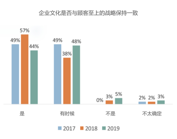 在以顧客至上為戰略的企業中,只有一半(44%)的公司認為自己的企業文化是與這一戰略保持一致的。
