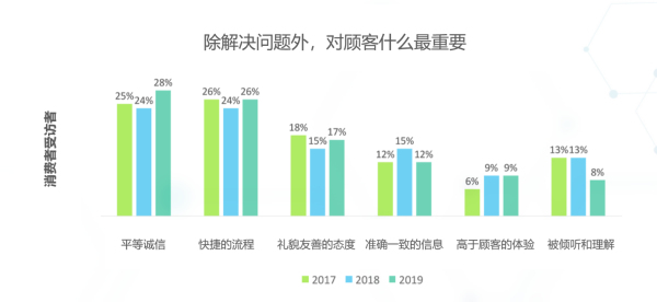 當被問及“除解決問題外,對顧客什么最重要?”,54%的企業受訪者選擇“快速簡便的流程”。但是,當消費者被問到類似的問題時,結果揭示出一些不同的觀點。