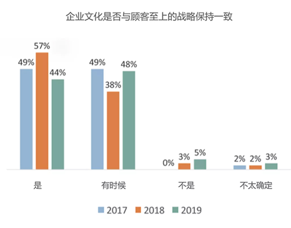 在以顧客至上為戰略的企業中,只有一半(44%)的公司認為自己的企業文化是與這一戰略保持一致的。